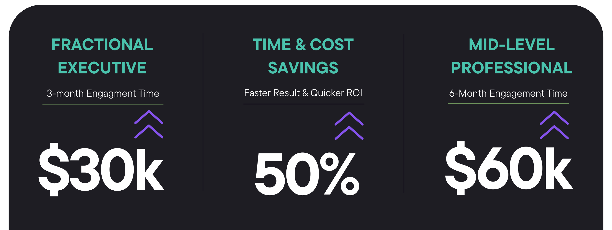 Investing in a fractional executive from Ailm delivers faster results, cost savings, and a quicker return on your investment. Our comprehensive, integrated approach in just 3 months provides superior value compared to a longer, more fragmented mid-level hire.